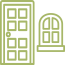 Decorative veneered main door, flush doors, and aluminium windows with mosquito sliders, stone sill, and jumb.